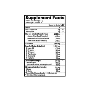 VITAMINAS Y MINERALES ESENCIALES PARA EL APOYO NUTRICIONAL E INMUNITARIO DIARIO Valores nutricionales optimizados para satisfacer las necesidades diarias de vitaminas, minerales y hierbas de los atletas, incluidos zinc, vitaminas C, B, D, además de aminoácidos EAA y BCAA, y más.