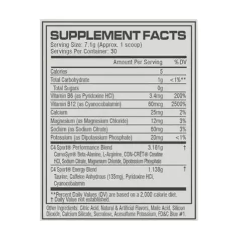 C4 Pre-Workout 30 Servicios Blue Raspberry CELLUCOR