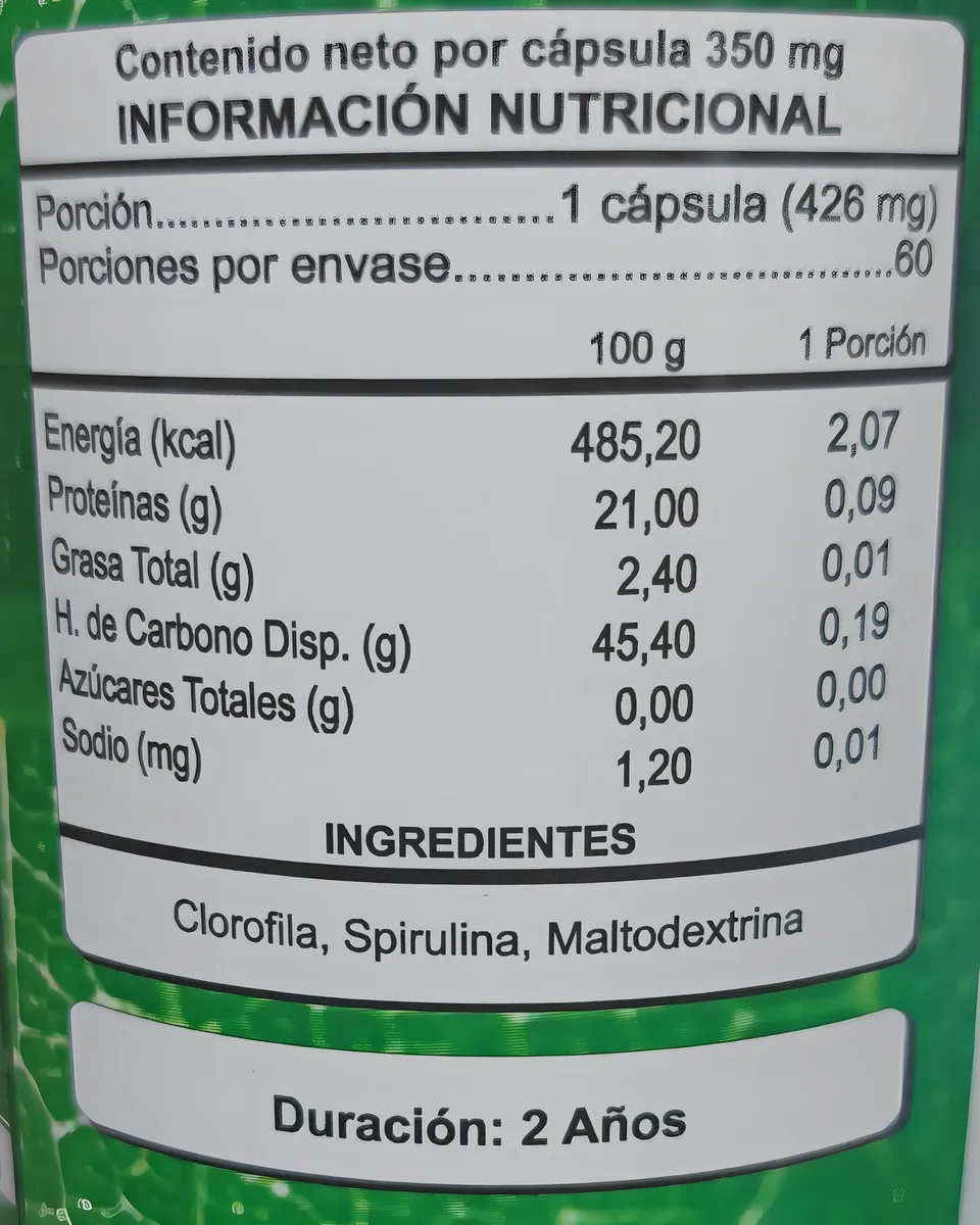 La combinación de clorofila y spirulina ofrece una forma conveniente de complementar una dieta saludable, favoreciendo una mejor digestión, mayor oxigenación celular y un soporte integral al sistema inmunológico. Además, la spirulina es conocida por sus propiedades energizantes, lo que la hace un aliado perfecto para quienes tienen un estilo de vida activo.