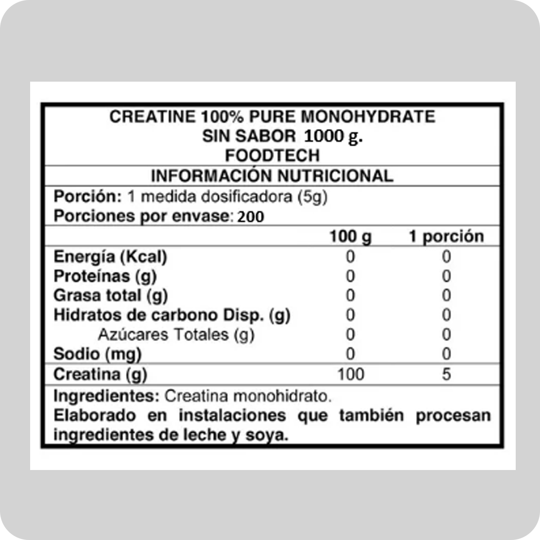 Creatine 100% Pure Monohydrated de Foodtech es un suplemento alimenticio diseñado a base de monohidrato de creatina que ayuda a mejorar el rendimiento físico, prevenir lesiones musculares y recuperar los músculos después de exigentes entrenamientos. La creatina monohidratada es considerada como la mejor creatina para deportistas gracias a su rápida absorción y acción en la masa muscular. Además la creatina permite mejorar los resultados físicos, colabora con el crecimiento muscular y aumenta su fuerza. Beneficios de Creatine 100% Pure Monohydrated: Potencia un mejor rendimiento físico Previene las lesiones musculares Favorece el crecimiento muscular Aumenta la fuerza y energía