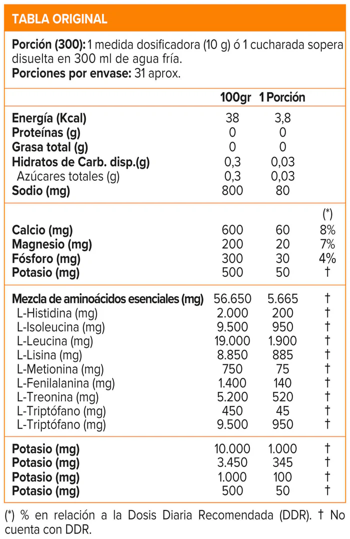 Agregar a un vaso mezclador una porción del producto en 300 ml de agua fría, agitar hasta lograr una mezcla homogénea. En días de entrenamiento consumir una porción durante o inmediatamente después. Para mejores resultados consumir diariamente. Consumo máximo una porción al día